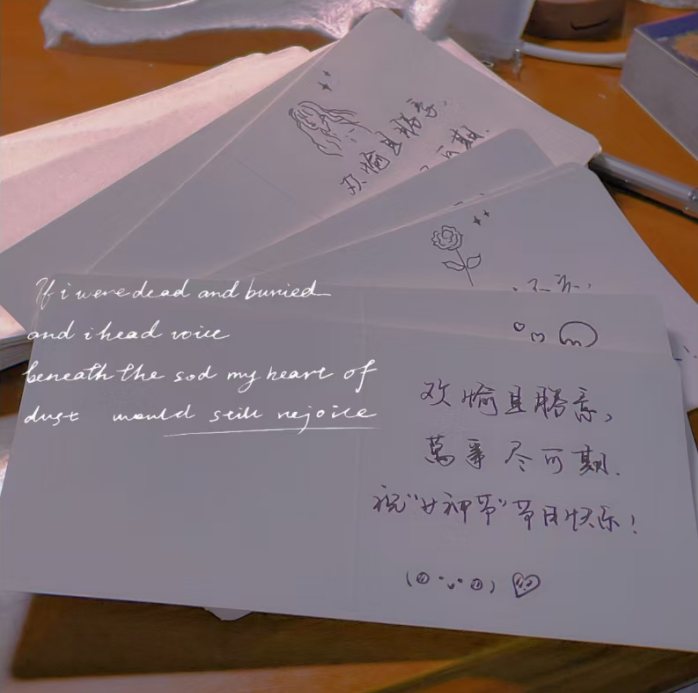 一張張賀卡,一筆一劃,都是滿滿的愛意;